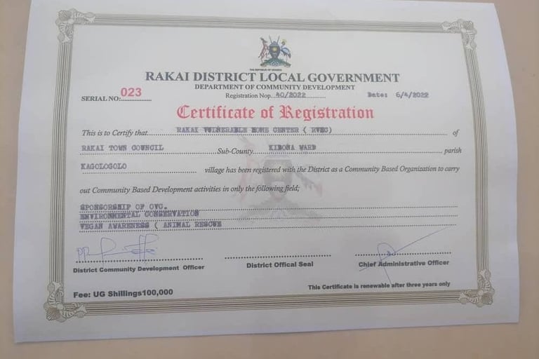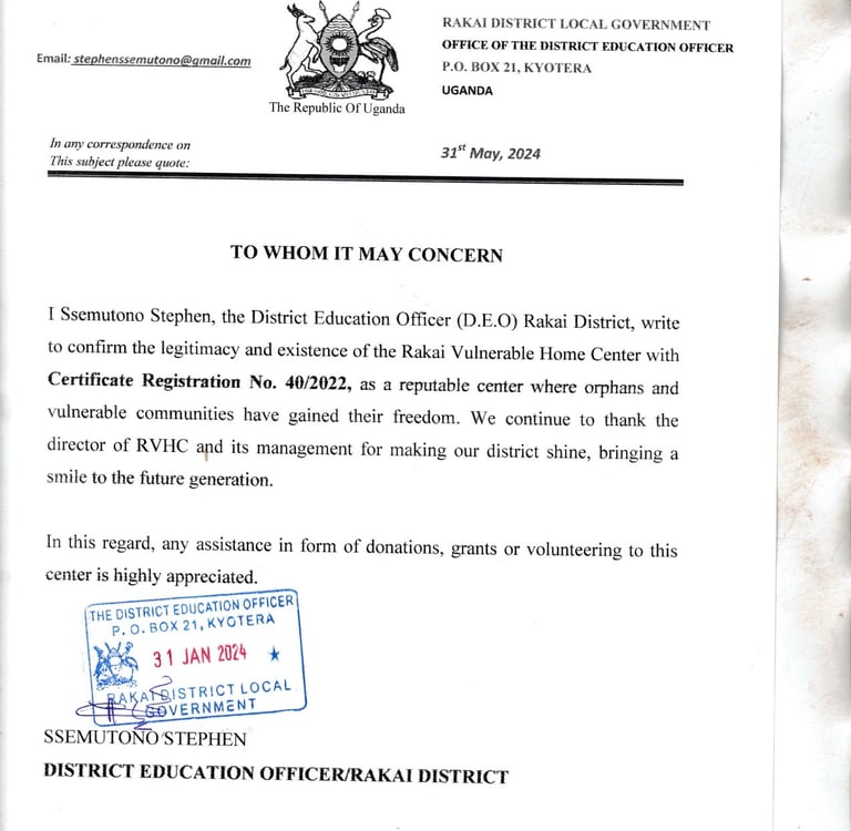Rakai Vulnerable Home Center is officially registered with and endorsed by the local government in the Kyotera/Rakai District of Uganda.